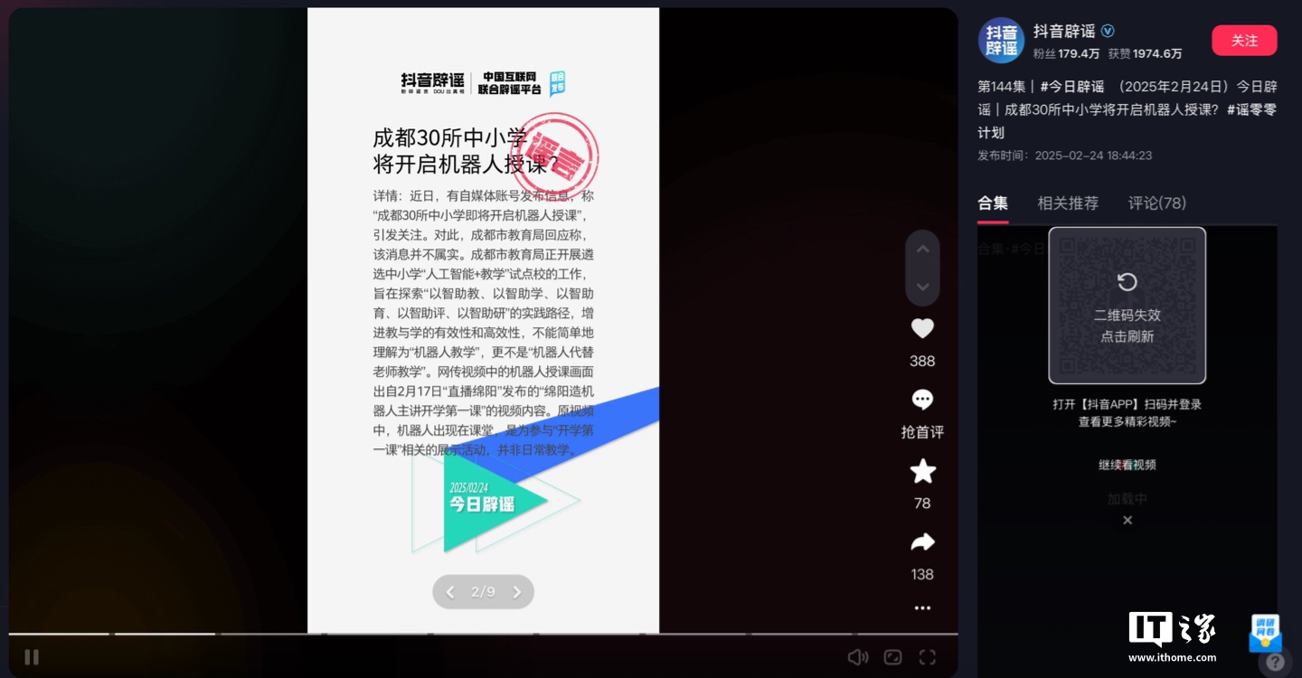 2 月 25 日消息,据“抖音辟谣”官方号,近日,有自媒体账号发布虚假信息,称“成都 30 所中小学即将开启机器人授课”,引发网友热议。