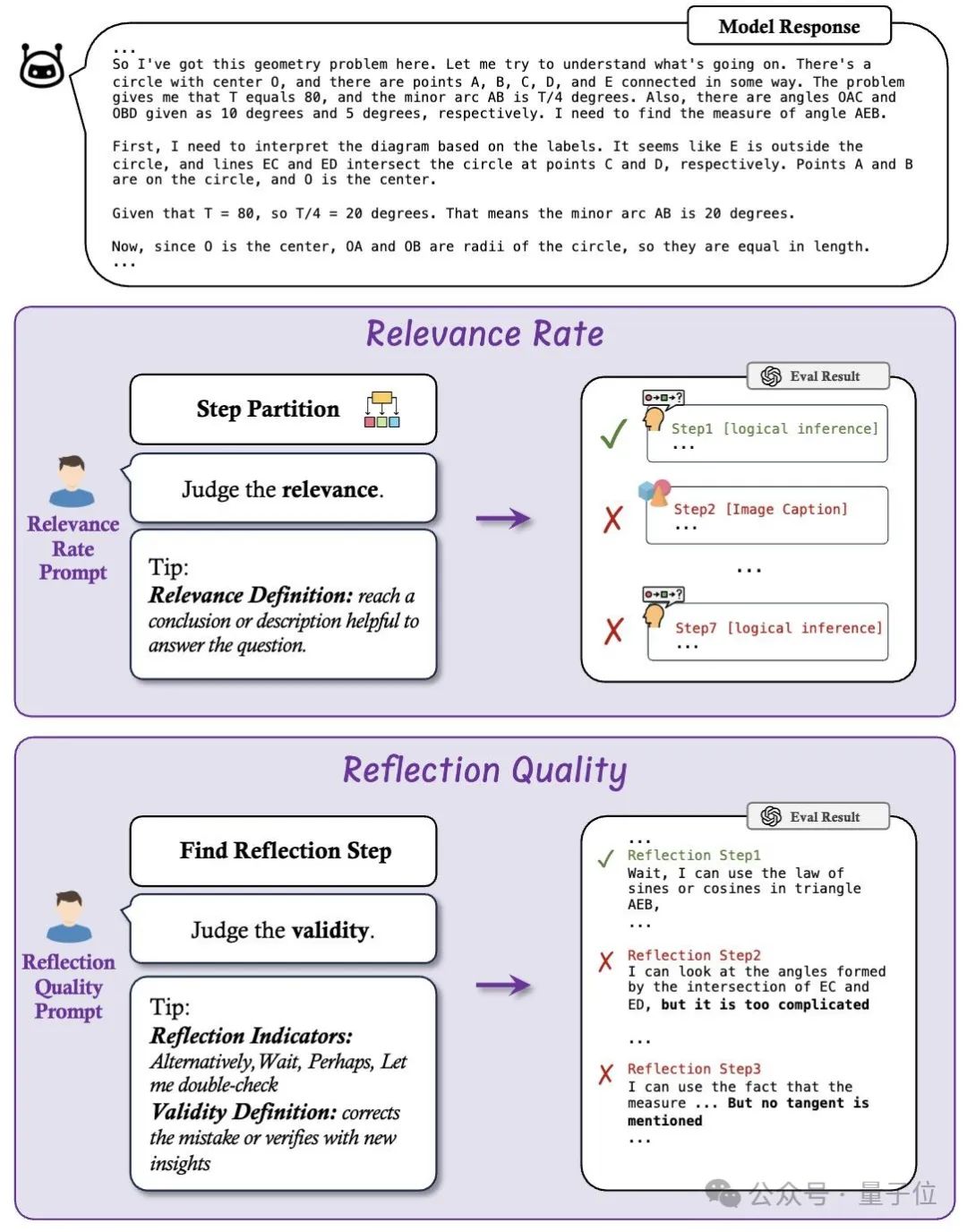 反思质量(Reflection Quality):分析每个反思步骤是否更正了推理中的错误或者从新的角度验证了目前结论的正确性。