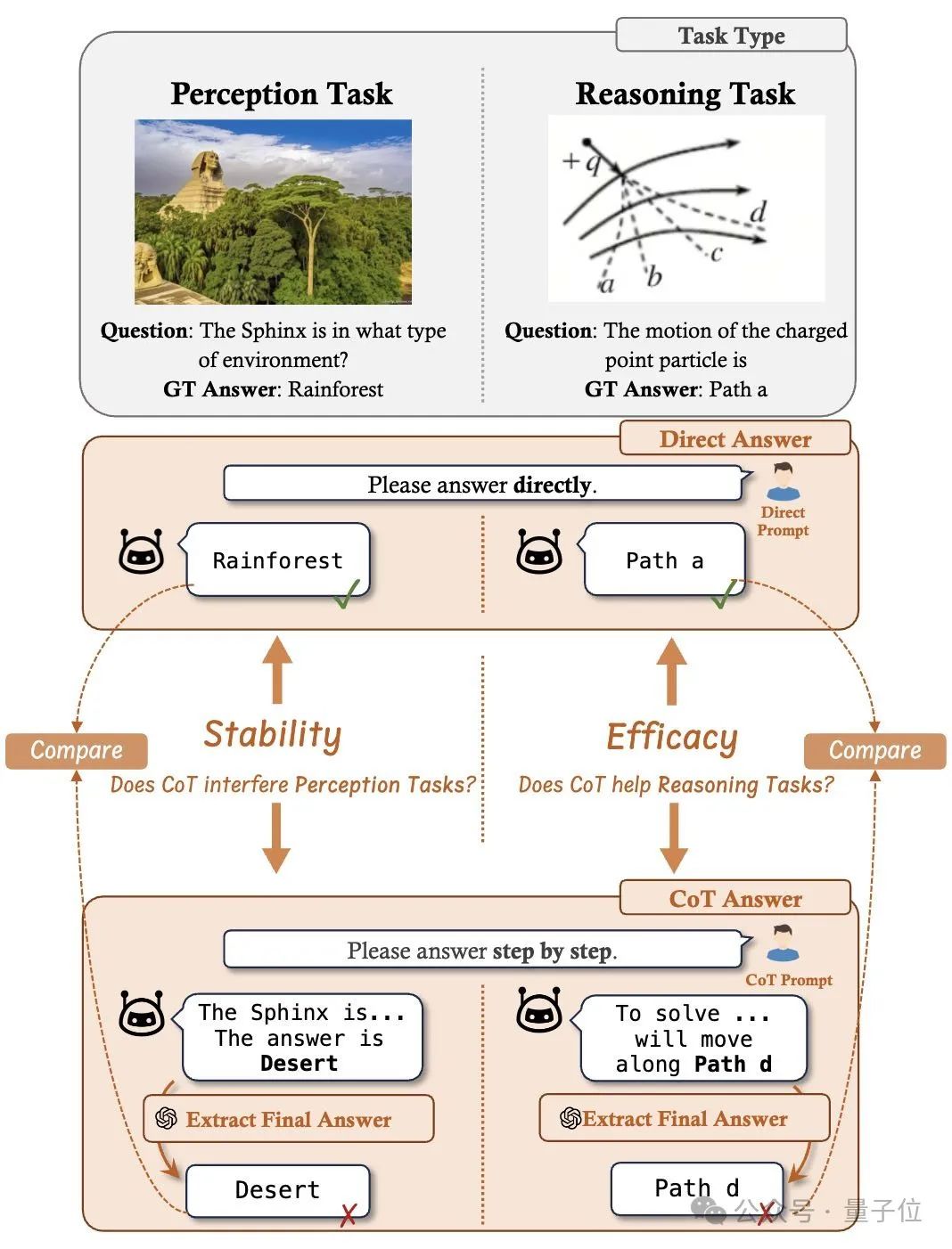 稳定性(Stability):检查 CoT 是否对模型在感知任务上的表现产生负面影响