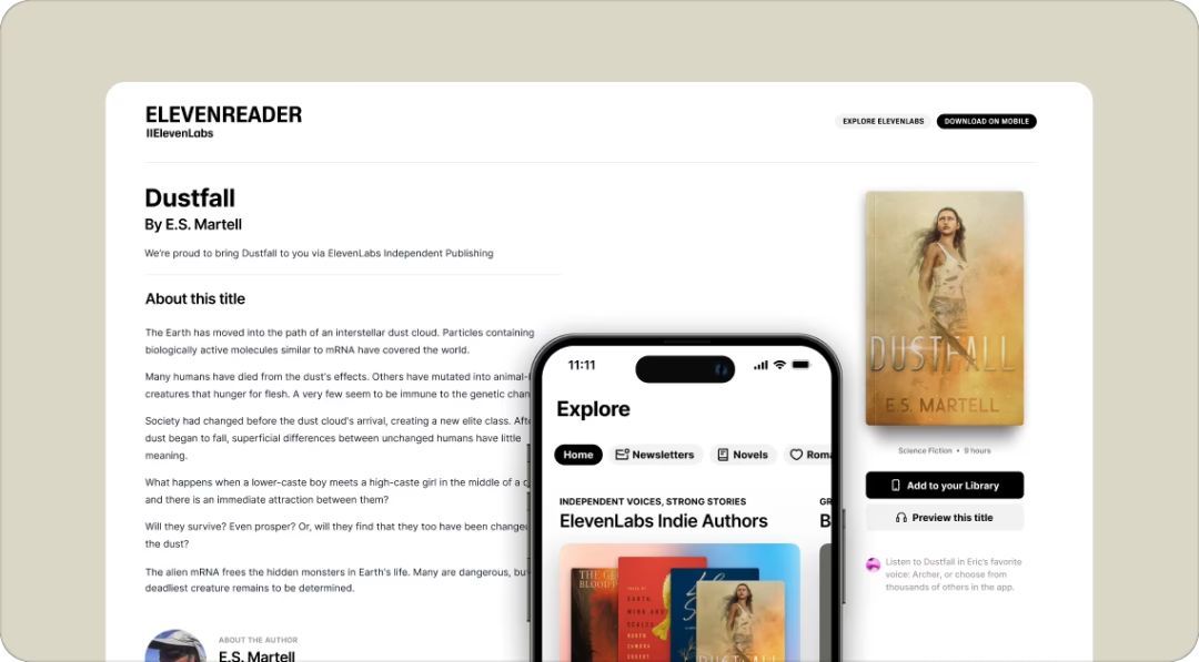 2 月 27 日消息,ElevenLabs 于 2 月 25 日发布博文,宣布推出 ElevenReader Publishing 平台,利用 AI 语音技术帮助作者轻松制作有声书。