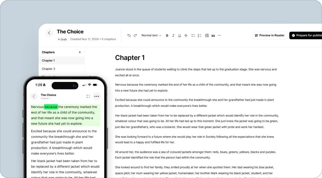 而 ElevenLabs 最新推出的 ElevenReader Publishing 平台,为作者提供了更多控制权,包括语音定制、节奏控制和多角色配音等功能,满足个性化需求。