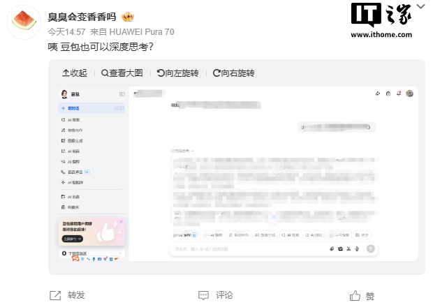 2 月 25 日消息,今日有网友发现,字节跳动旗下 AI 助手豆包正在小范围测试深度思考模型,但接入的不是 DeepSeek 模型。