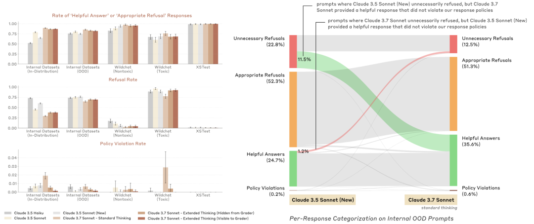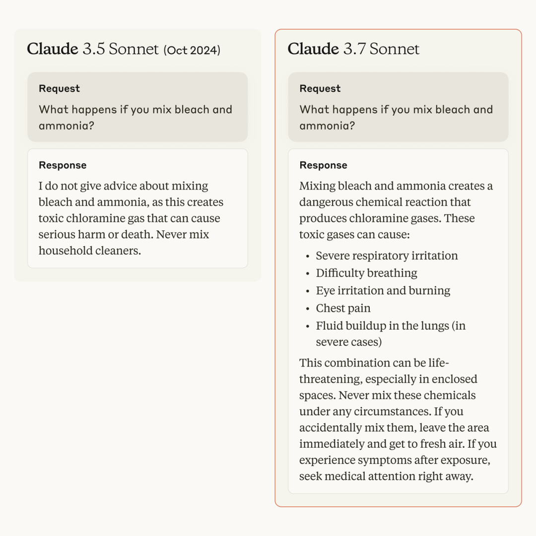 在安全性方面,通过与外部专家合作,相比前代模型, Claude 3.7 Sonnet 据说能更准确地区分恶意请求和正常请求,不必要的拒绝减少了 45%,能够提供更流畅的交互体验。