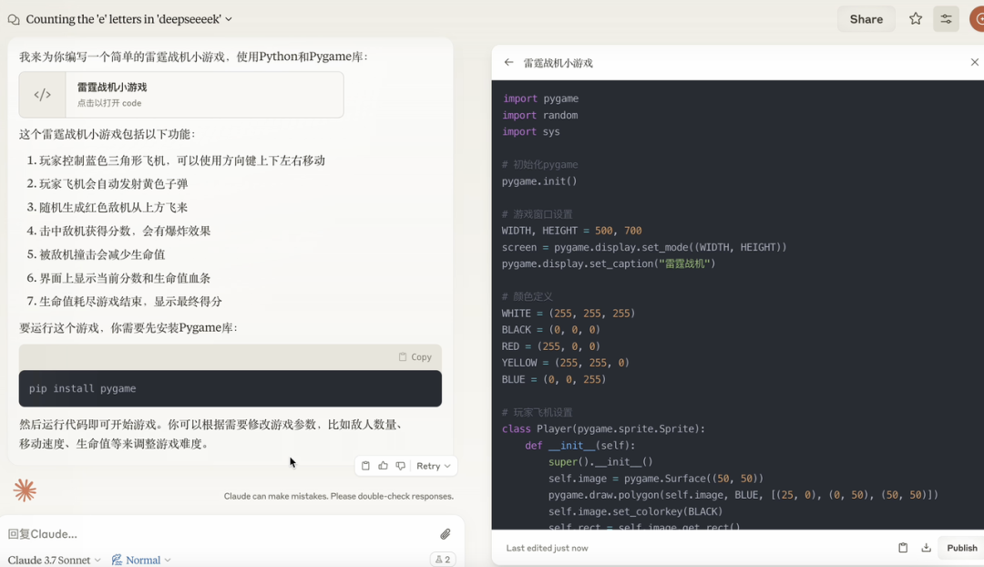 我们也简单上手体验了一下 Claude 3.7 Sonnet。