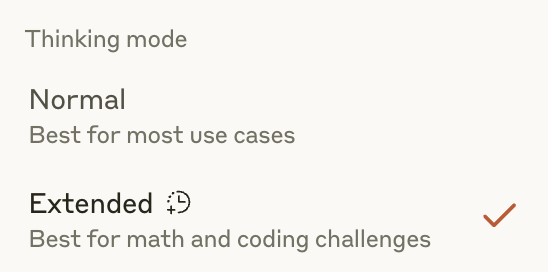 在模型选择栏切换点击「Extended」,即可进入扩展思考模式。
