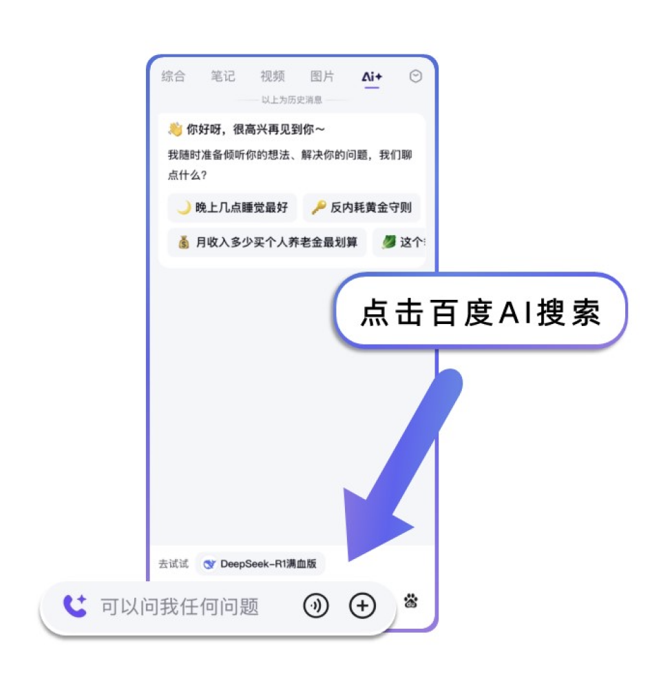 查询发现,百度 App 今日更新到 15.0 大版本,全量上线「AI 搜索」入口,打开百度 App → 点击首页底部 AI 入口,即可进入搜索页面。