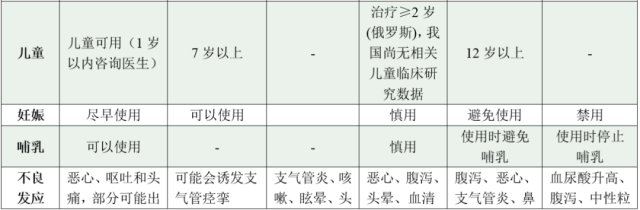 目前使用较多的是奥司他韦的口服剂型(包括颗粒剂和胶囊剂),对于甲型和乙型流感均有效。一些医院还有静脉用的帕拉米韦和吸入用的扎那米韦。