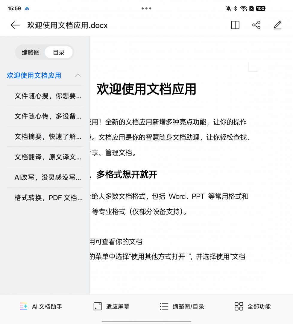 在AI技术的深度赋能下,Find N5的文档处理能力堪称移动办公利器。全新的双文档分屏模式打破了传统移动端文档处理的局限:用户可以在左侧查看原始文档,右侧同步进行批注编辑;翻译场景中,系统会自动分栏显示原文与译文,实现即时对照。这种"所见即所得"的布局方式,让文档处理效率提升达70%。